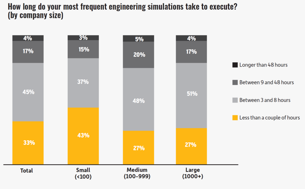 甚至有超過五分之一的人表示,他們最重要、最頻繁的仿真必須通宵運(yùn)行至少9至48個(gè)小時(shí)以上,這讓很多工程師不得不降低了幾乎所有模型的大小或精確度。