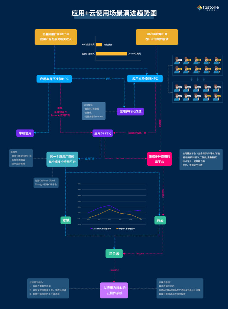 3、不管單機(jī)還是HPC模式,進(jìn)行應(yīng)用SaaS化后,既能以此為基礎(chǔ)打造單一廠商的專有平臺(tái),也能多領(lǐng)域不同應(yīng)用集成開放的云平臺(tái),比如我們fastone云平臺(tái),配套專業(yè)服務(wù),資源近乎無限。詳細(xì)可以看下圖:應(yīng)用+云使用場景演進(jìn)趨勢圖