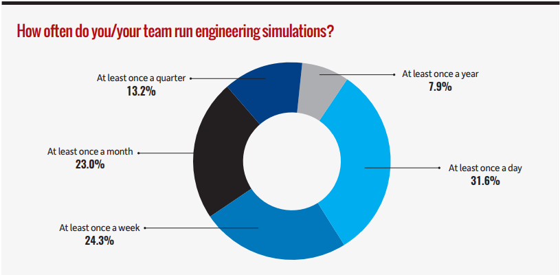 報告指出,超過55.9%的工程師每周至少使用一次仿真,31.6%的工程師每天至少使用一次仿真。