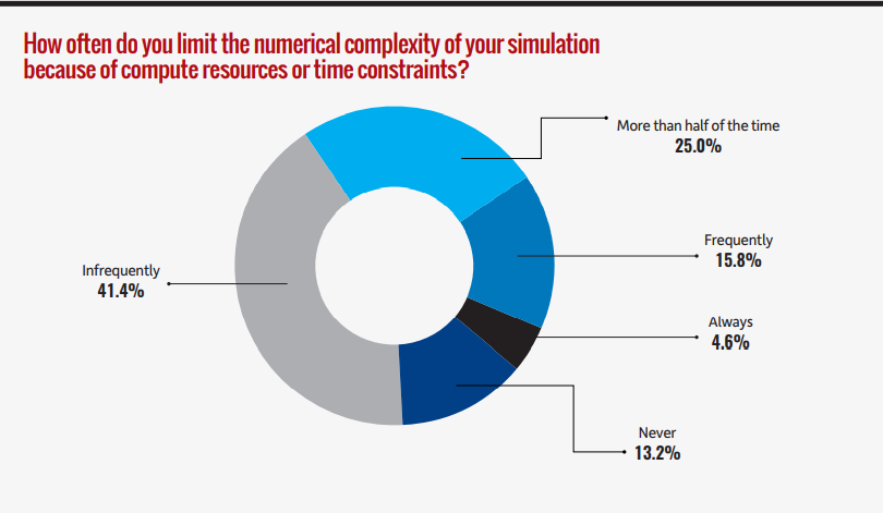 雖然受訪者表示在設計流程的各環節中越來越多地使用上了仿真,但隨著仿真模型規模、復雜性的不斷提高,各大公司仍有一些苦惱。