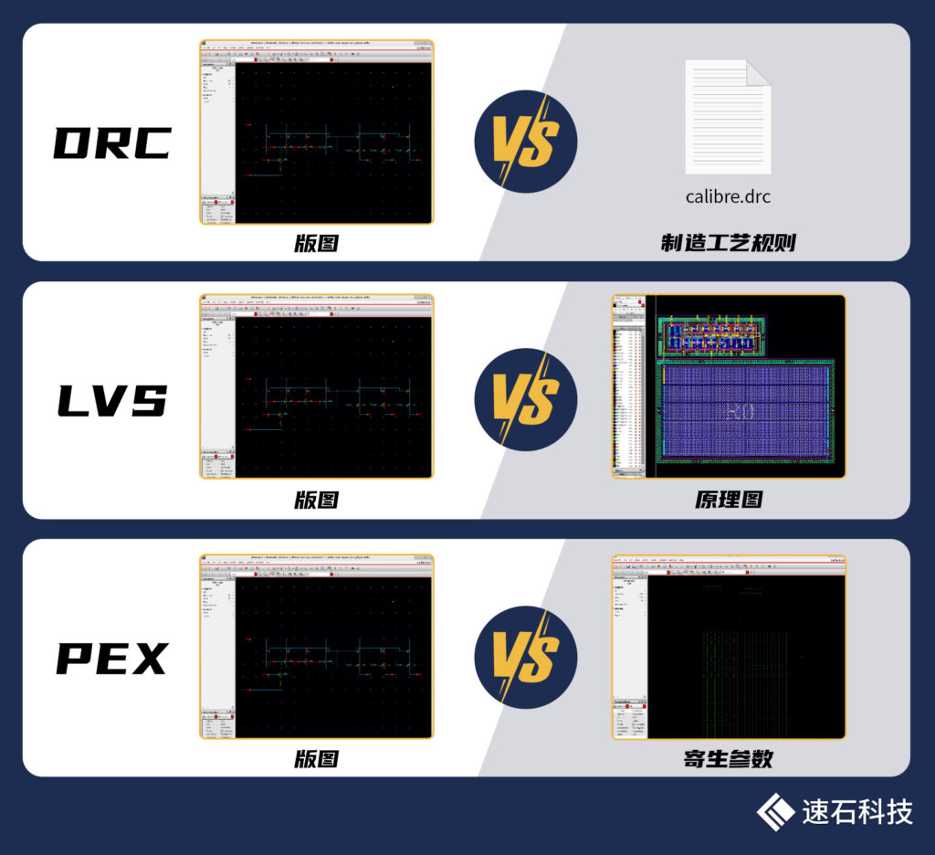 這三個環節分別由Calibre的DRC、LVS、PEX三種工具來完成。