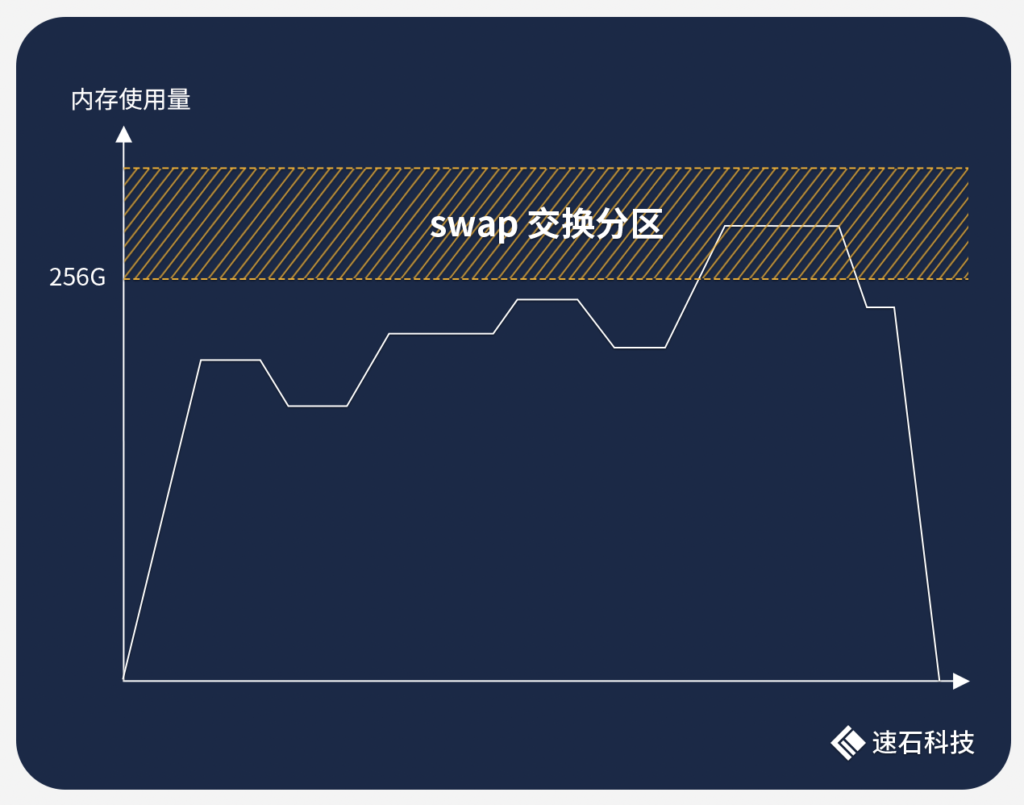 使用Swap交換分區就可以無縫填補這一空缺,非常匹配這種內存峰值場景。