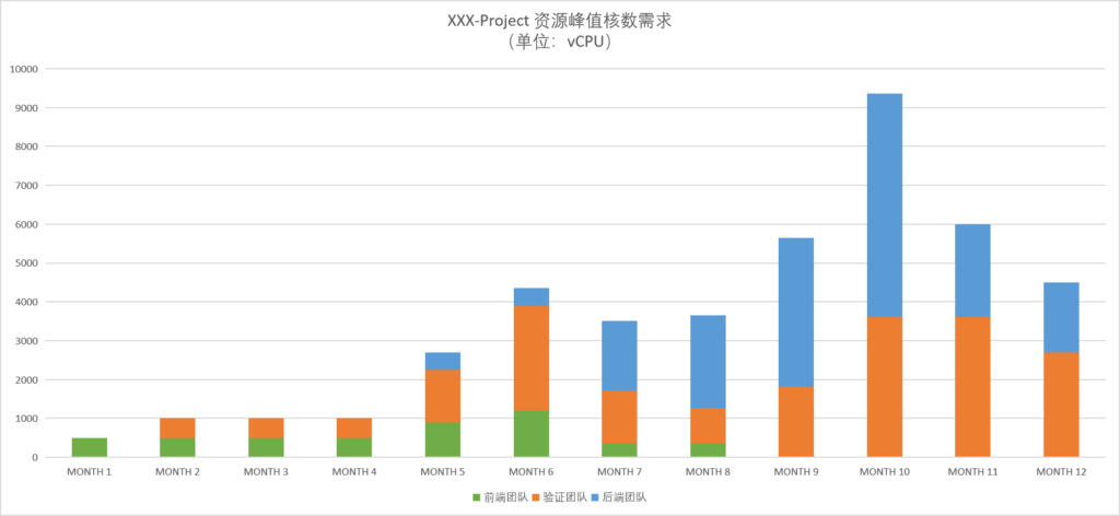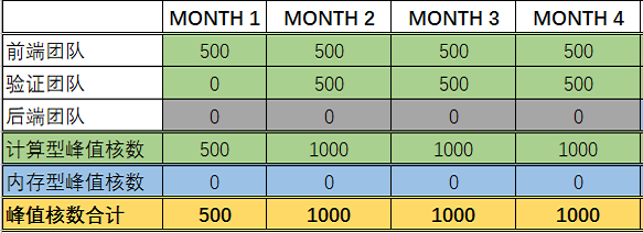 1. ?前4個月,只涉及到前端布局與架構(gòu),對于算力需求不高,因此月度算力需求較少;
