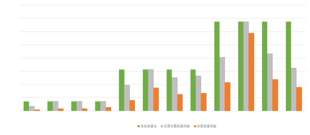 灰色代表當(dāng)月按峰值頂格算的用量,橙色代表月度實際用量。