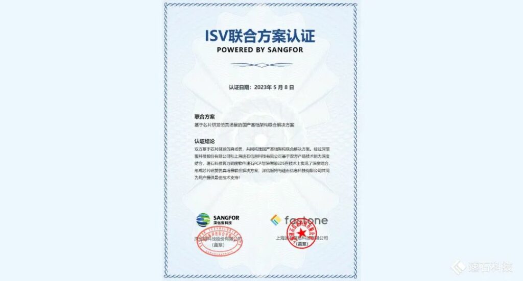 速石科技與深信服的聯(lián)合解決方案已于近日通過雙方ISV聯(lián)合方案認證,并成功服務了多家不同類型的半導體行業(yè)用戶。在此基礎上,雙方還將持續(xù)就速石科技FCP研發(fā)平臺、深信服VDI云桌面、超融合等產(chǎn)品,積極探索多種業(yè)務場景的支持方案。