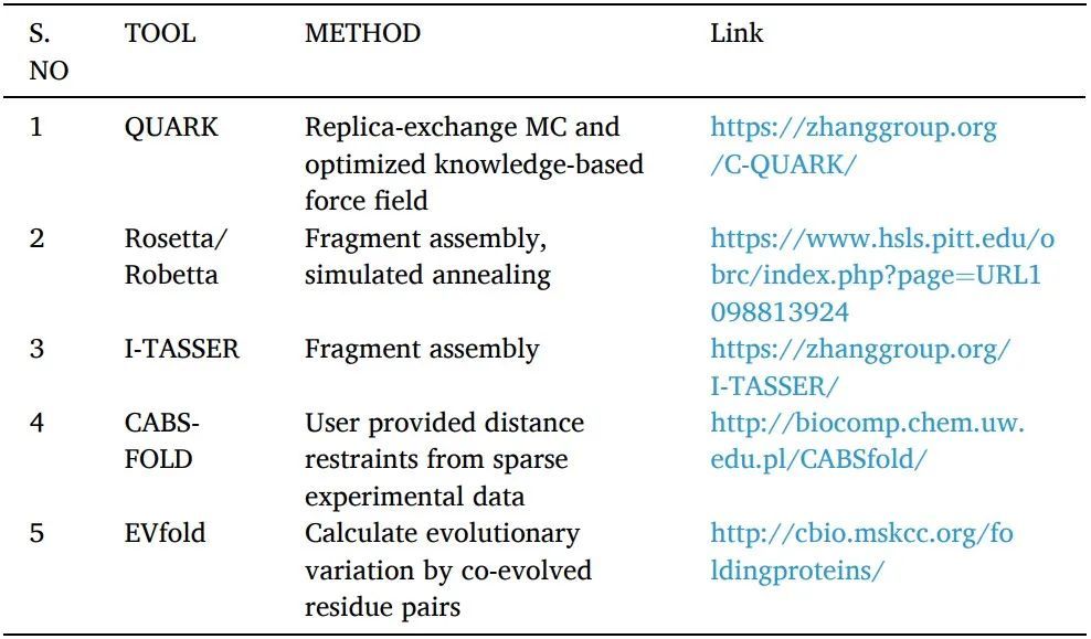 從頭或從頭建模:當結構中沒有足夠的同質性來進行比較建模時,將執行從頭或從頭建模(表3)。
