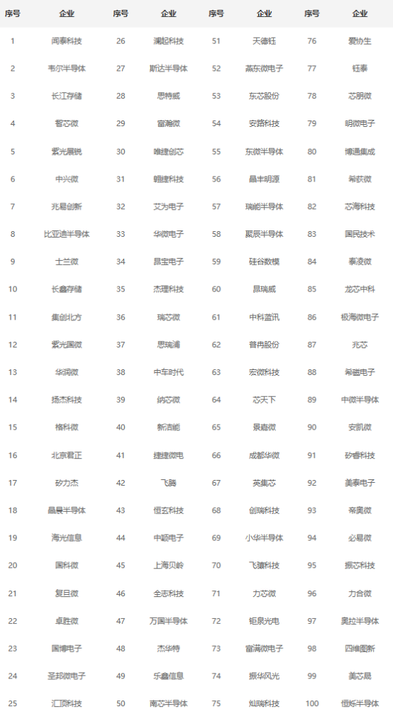 2022年中國(guó)半導(dǎo)體百?gòu)?qiáng)公司一覽